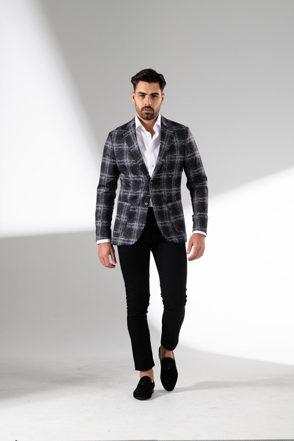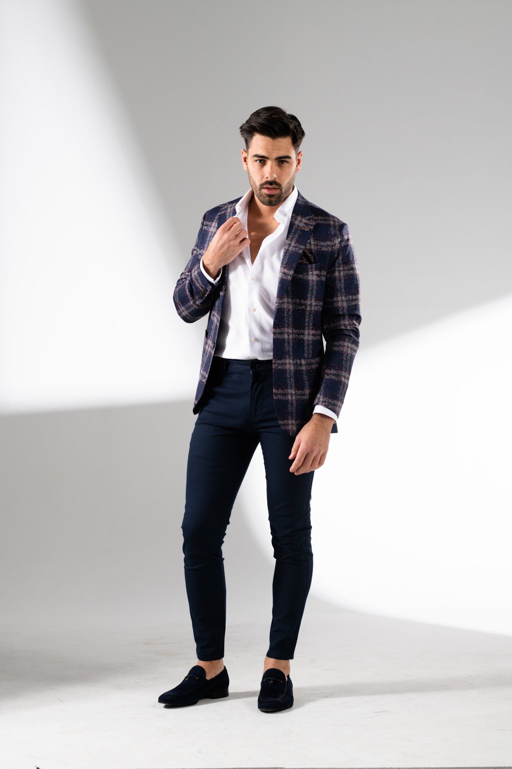 These jackets are made of a non-crease material which can be scrunched up into suitcases, carry bags or even left it in the car and still ber thrown on without being pressed. You'll find the complimatery hankie in the breast pocket also doubles as a matching bag which you can fold these jacket into when on the go!